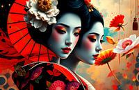 schilderachtig japanse fictieve abstracte kunst met heldere felle kleuren