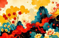 schilderachtig japanse fictieve abstracte kunst met heldere felle kleuren