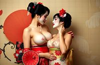 schilderachtige afbeelding van japanse fictieve Geisha, japanse iliustratieve kunst