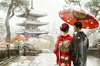 digitale schilderachtige japanse kunstwerken van fictieve personen of landschappen