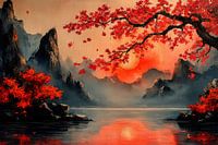 schilderachtige japanse aziatische kunst met fictieve personen of landschappen en of voorwerpen