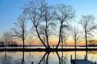 Langs deze boom loopt een fietspad tussen de Reeuwijkse plassen door. Gelukkig is het er 's morgens vroeg bij zonsopkomst altijd al druk.