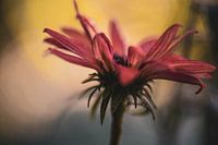 close up van een nieuwe jonge echinecea, ofwel zonnehoed, met een zachte oranje achtergrond