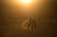 jonge leeuw in afrika bij zonsopkomst