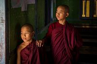 In Myanmar moet elke jongeman voor zijn 20ste in ieder geval een keer het klooster in om de leer van het Boeddhisme te begrijpen. Hoe lang ze vervolgens in het klooster blijven bepalen ze zelf. Sommigen vertrekken al binnen een week en anderen vertrekken nooit meer. Maar omdat het een verplichting is en veel jongeren langer blijven (ze krijgen dan in ieder geval dagelijks te eten en hebben een fatsoenlijke slaapplek) kom je deze jonge monniken overal in Myanmar tegen. Zo ook dus in dit klaslokaal in een klooster in Yangon