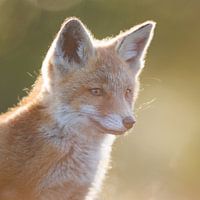 een jonge vos. De foto is gemaakt met prachtig licht bij een ondergaande zon