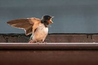 jonge boerenzwaluw wachtend om gevoed te worden