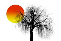 Kale boom met gekleurde zon - grafische kunst eenzame ziel