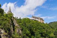 het kasteel van Vianden (veianen) gelegen in de stad Vianden in Luxemburg op een rots naast de rivier de Our