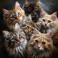 verschillende speciale rassen huiskatten in en rondom huis groepsfoto