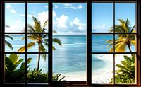 fotorealistich digitaal beeld van uitzicht vanuit het huis op een mooi landschap of tuin met fijne details en heldere kleuren