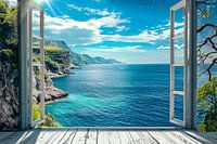 uitzicht vanaf mijn vakantieadres op een prachtig wijds landschap wat een kalmerende invloed op mij heeft en me een gevoel van vrijheid en rust geeft. AI bewerking