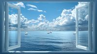 uitzicht raam met uitkijk over water met zeilboten
