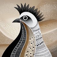 Moderne en strakke illustratie van een kip in zwart wit en beige.