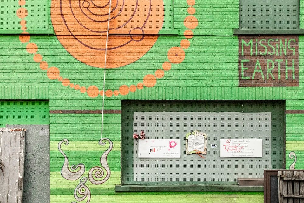 een verlaten straat, dichte huizen, maar prachtige kleuren