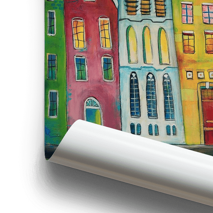 Schilderij van een impressie van Middelburg, de Zeeuwse hoofdstad waar het leven van afspat.. dit proberen te vangen in dit schilderij waarbij ook de Lange Jan verwerkt is en de grachten...
