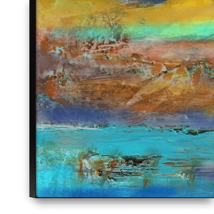 Koop dit landschapskunstwerk kleurrijk landschap met turkoois en blauw van Claudia Gründler als print op canvas, aluminium dibond, (ingelijste) fotoprint, behang en ArtFrame. Voor jou op maat geprint in Fine-Art kwaliteit.
