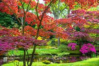 bloeiende sierkers, Japanse esdoorn en azaleas in Japanse tuin in Clingendael in Den Haag
