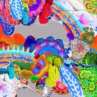 vrolijke kleuren in dit schilderij gemaakt van microscopische fotos. gemaakt door Nicole Roozendaal.
