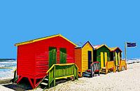 Landschap met kleurrijke kleedkamers op het strand in Muizenberg mixed media