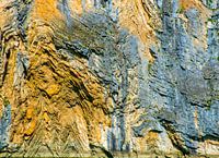 De rivier de Drin baant zich een weg door de bergen in het noorden en slijpt de rotsen uit waarbij prachtige kleuren ontstaan.