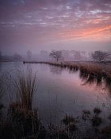 Een kleurrijk begin van de dag met weerspiegeling in het water van de Hatertse en Overasseltse Vennen bij Nijmegen, Nederland.