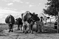 Een koppel koeien die het weiland in lopen