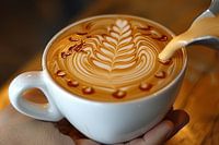 digitaal beeld van de bereiding van een kop koffie of cappuccino in een horecagelegenheid of gewoon thuis met een koffiezetapparaat