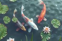 Digitaal kleurrijk schilderachtig beeld van Koi karpers in een japanse vijver met helder water