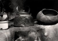Koken op open vuur in een oude plattelandskeuken