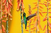 green emerald kolibrie in de aloe in Aruba