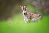 een wild konijn in een grasveld