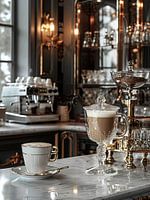 kop koffie of cappuccino drinken thuis of in horecagelegenheid aan het plein of aan het strand