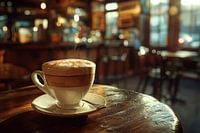 kop koffie of cappuccino drinken thuis of in het cafee of restaurant of op het plein of aan zee alleen of in gezelschap