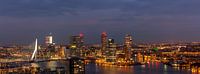 Panorama opname van de kop van zuid in rotterdam tijdens het blauwe uur vnaf de euromast.