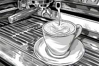 digitaal beeld van de bereiding van een kop koffie of cappuccino in een horecagelegenheid of gewoon thuis met een koffiezetapparaat