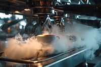 digitaal beeld van de bereiding van een kop koffie of cappuccino in een horecagelegenheid of gewoon thuis met een koffiezetapparaat