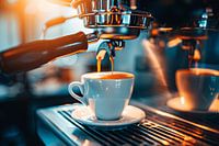 digitaal beeld van de bereiding van een kop koffie of cappuccino in een horecagelegenheid of gewoon thuis met een koffiezetapparaat