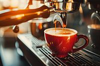 digitaal beeld van de bereiding van een kop koffie of cappuccino in een horecagelegenheid of gewoon thuis met een koffiezetapparaat