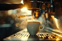 digitaal beeld van de bereiding van een kop koffie of cappuccino in een horecagelegenheid of gewoon thuis met een koffiezetapparaat