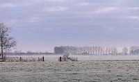 landschap in Homoet, Gelderland, waar de weilanden bevroren zijn, en de lucht mooi aan het kleuren is door de opkomende zon