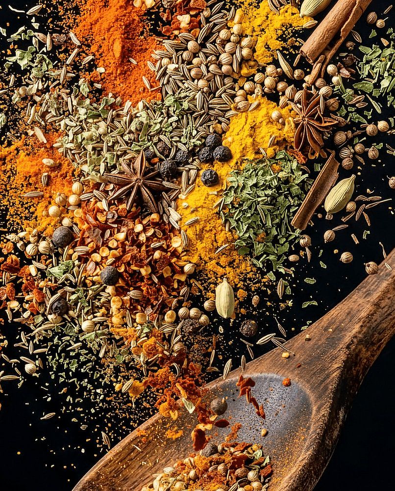Een explosie van smaken op een houten lepel. deze afbeelding is doormiddel van ai en Photoshop tot stand gekomen. een kleurrijke plaat voor in de keuken of een plaats waar de maaltijd wordt genuttigd.