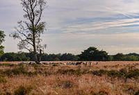 landschap op de heide van Gelderland, waar een kudde schapen bij een boom staat in het mooie licht van de vroege avond