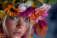 combinatie van schilder en of fotografiekunst van fictief model met bloemen of fantasie achtergrond