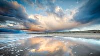 Een Hollandse wolken lucht in de herfst boven de Noordzee en het duinlandschap.