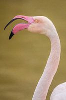 Detail van een hoofd van een flamingo in de Camargue (Zuid-Frankrijk). Idrukwekkend beeld waar je uren kan naar blijven kijken. Kunst in het roze. Staat erg modern aan de muur.