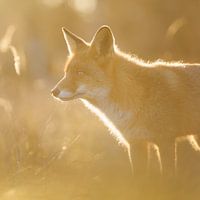 op een koude dag in de winter staat deze vos nog even mooi in he prachtige laatste licht van de dag.