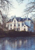 portret op het landgoed van Staverden, met zicht op het kasteel van Staverden in de ochtendzon, en op de voorgrond het bevroren water van de gracht