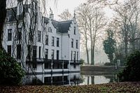 landschap op het landgoed van Staverden, met zicht op het kasteel van Staverden, op een zonnige en nevelige winterochtend