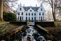 landschap op het landgoed van Staverden, met zicht op het kasteel van Staverden met op de voorgrond een waterval